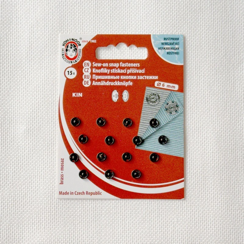 Proto jsem do obchůdku vložila sadu našívacích kovových (nikl) patentek o průměru 6 mm. Na kartě jich najdete 15 kusů. Jsou nerezavějící.