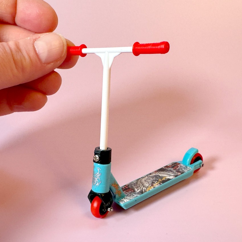 Mini koloběžka je dokonalým doplňkem pro každého medvědího kamaráda. S výškou 8 cm je ideální pro stylový přesun medvídka z jednoho kouta na druhý 😉