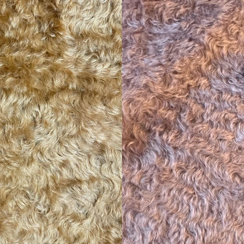 Jemný, vlnitý, hustý mohér. Z takového materiálu jsou medvídci nejroztomilejší. Skvěle se s ním pracuje.