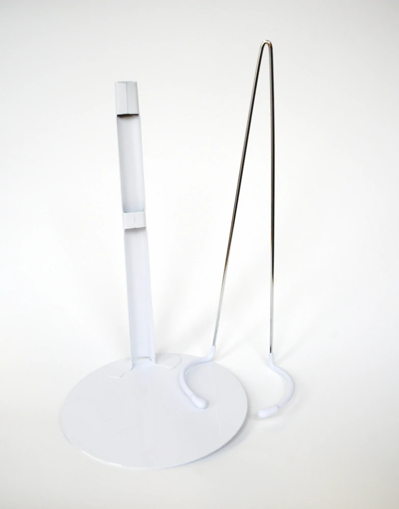 Stojan se skládá ze dvou částí, které se do sebe zasouvají. Výška stojanu je 26 - 43 cm. Do horní části stojanu se dává pas panenky popř. podpaží. Slouží pro panenky a medvídky od výšky 38 cm do výšky 50 cm. Podstava stojanu má průměr 14 cm. Váha stojanu je 176 g.